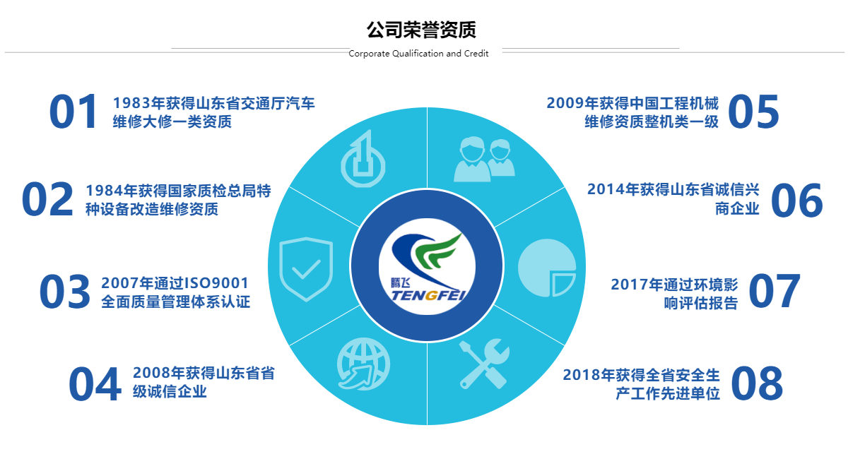 泰安騰飛工程機械有限公司,中聯重科山東維修中心,擁有自營備件中心庫。坐落于泰山腳下,泰安市東部新區,交通方便。公司是以工程機械維修,備件供應、二手工程機械交易為主營。是華北、華東地區工程機械維修規模較大、備件齊全、服務范圍廣的維修服務企業。中聯重科全系列汽車起重機售后服務維修,承接國內外汽車起重機、挖掘機、裝載機、叉車、道路救援服務等各種工程機械修理、保養,中聯重科山東備件中心庫、徐工、三一、泰安起重機全車配件。同時是濰柴、上柴、法士特變速箱、漢德車橋的服務站和備件經銷商,是人保、太平洋、中華聯合、平安等保險公司戰略合作拆解定損維修中心。公司占地30畝,辦公區2000平方米,維修車間8000平方米。試車坪6000平方米。備件庫面積2000平方米。員工120余人,技術人員80余人,工程師4名。山東省交通廳一類大型汽車維修資質、中國工程機械維修整機類一級資質,并通過ISO9001質量管理體系認證。公司由中國工程起重機泰...